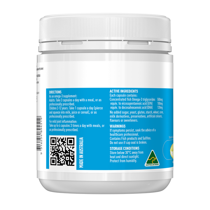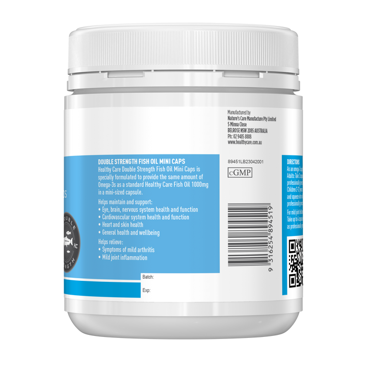 Healthy Care Fish Oil Mini Caps Odourless 特別配方,提供與標準1000毫克魚油膠囊相同量的Omega-3脂肪酸,但以方便吞服的迷你尺寸呈現。
