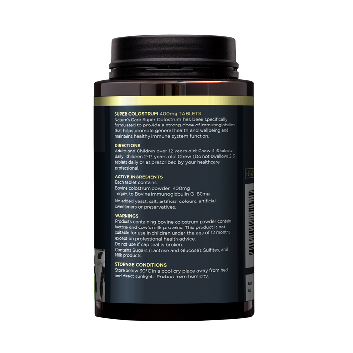 Nature's Care Pro Super Colostrum 是一款高效配方,每片含有 400毫克牛初乳粉。初乳天然富含 免疫球蛋白(抗體),有助於增強身體的自然防禦能力,維持健康的免疫系統,並支持整體健康。