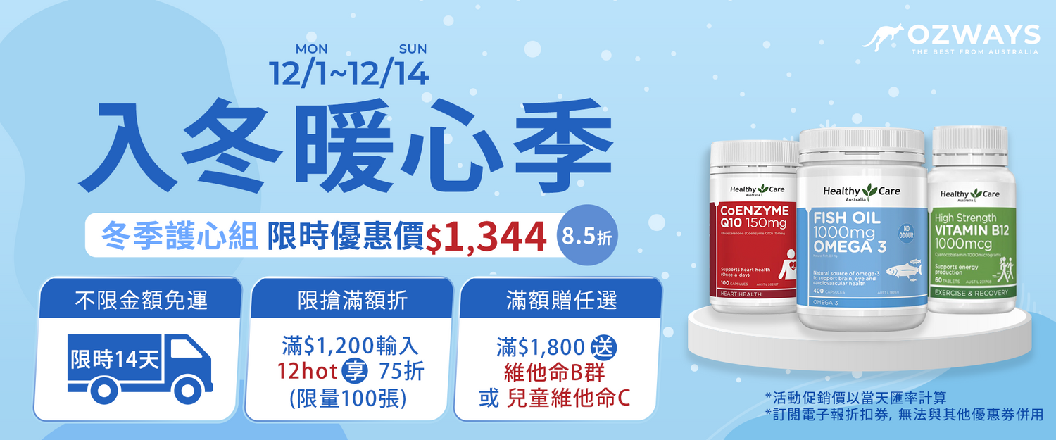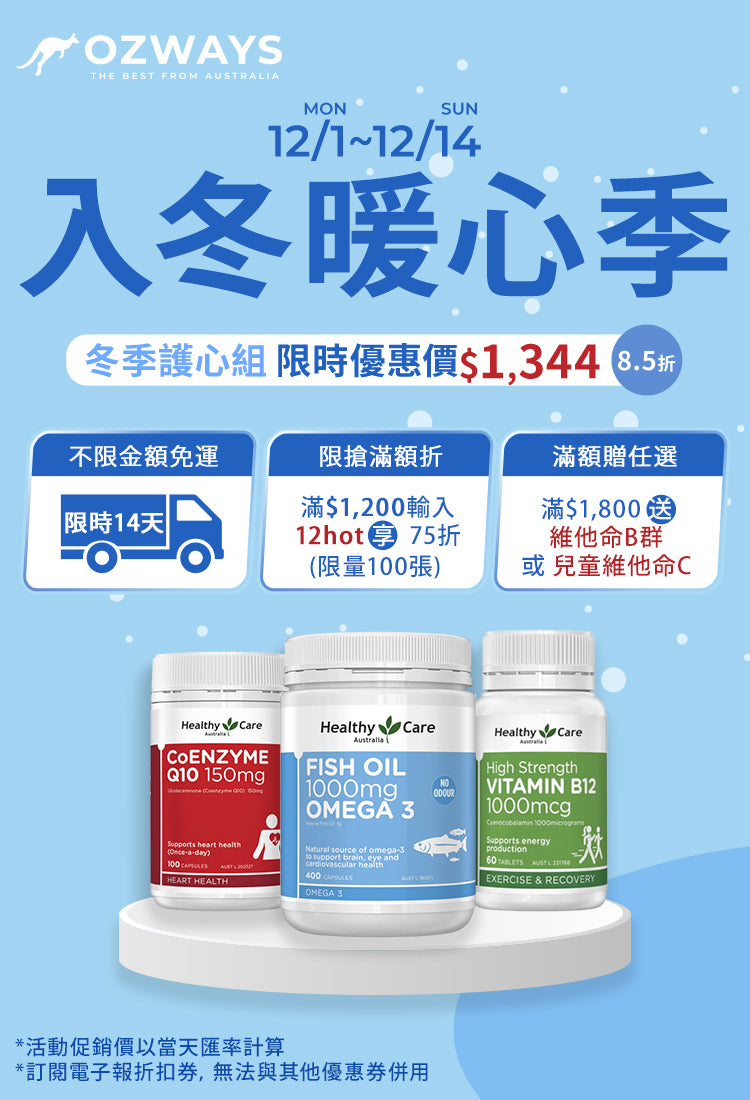 冬季心血守護明星組(輔酶Q10、魚油、維他命B) 📢限時優惠價$1,344 (依當天匯率計算)